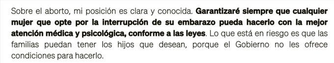 Además, califica el aborto como un “fracaso”. También tiene razón. Es un fracaso personal y social. Nada de lo que sentirse orgullosos. La sociedad a través de sus gobiernos debería priorizar el apoyo a la mujer con embarazo en dificultad. El aborto no es una solución; siempre es un problema.